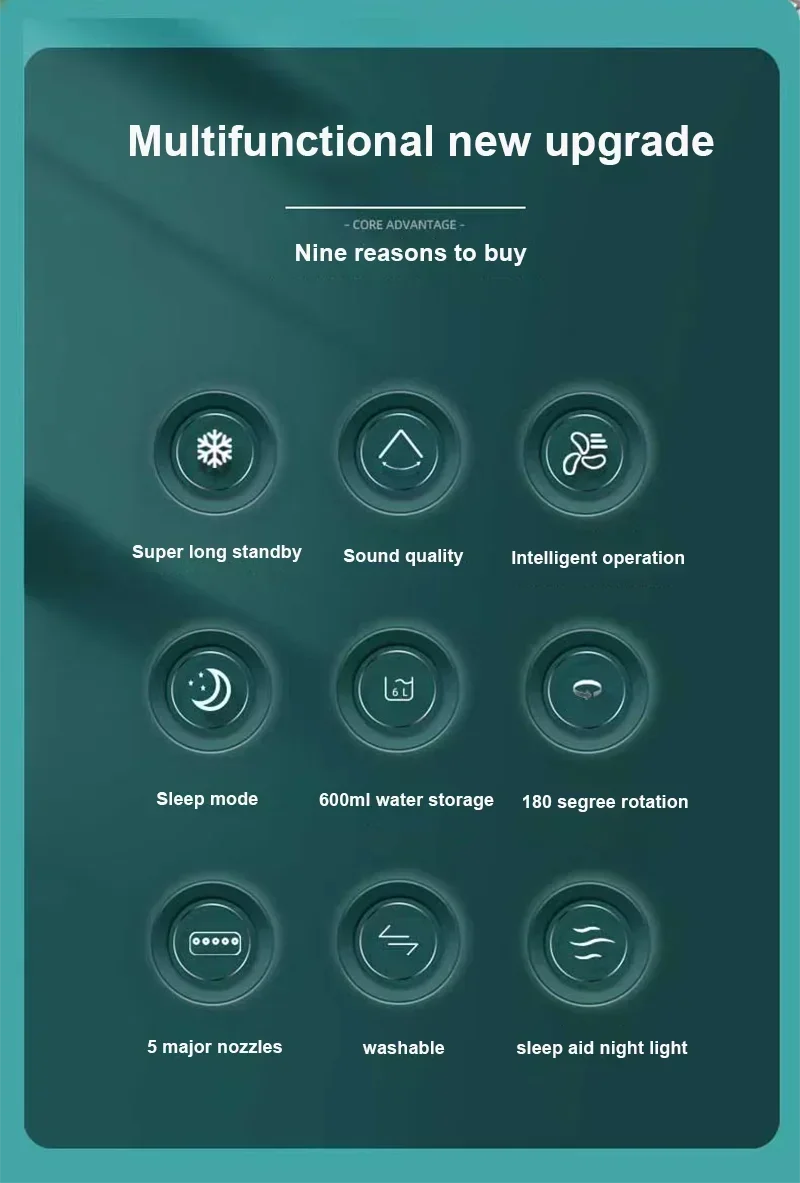 Stay cool, calm, and collected with this all-in-one portable humidification fan! Compact yet powerful, this sleek desk companion combines a fan, air conditioner, humidifier, and night light in one smart device. Perfect for summer heat, autumn dryness, or year-round desk vibes.